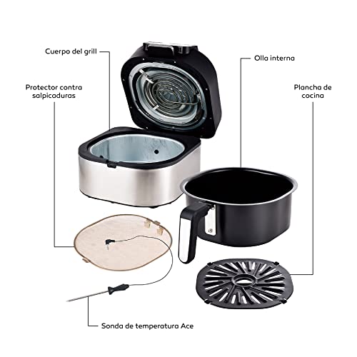- SABOR DE BARBACOA Y RAPIDEZ DE AIRFRYER: Nuestro nuevo grill eléctrico sin humo te permitirá obtener el sabor característico de cocinar a la barbacoa junto con la rapidez y la versatilidad de una freidora de aire sin aceite.