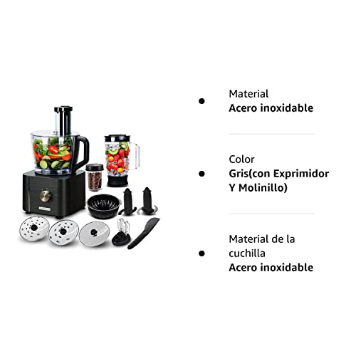 - Robot de cocina multifunción: función 11 en 1, perfecto para picar, mezclar, cortar fino o abundantemente, exprimir, lijar, rallar, batir. Con la amasadora puedes hacer masa. Se puede utilizar como cortador de verduras, licuadora, picadora multiusos, picadora de carne, molinillo de café, licuadora y robot de alimentos para bebés, tu gran mano de cocina.